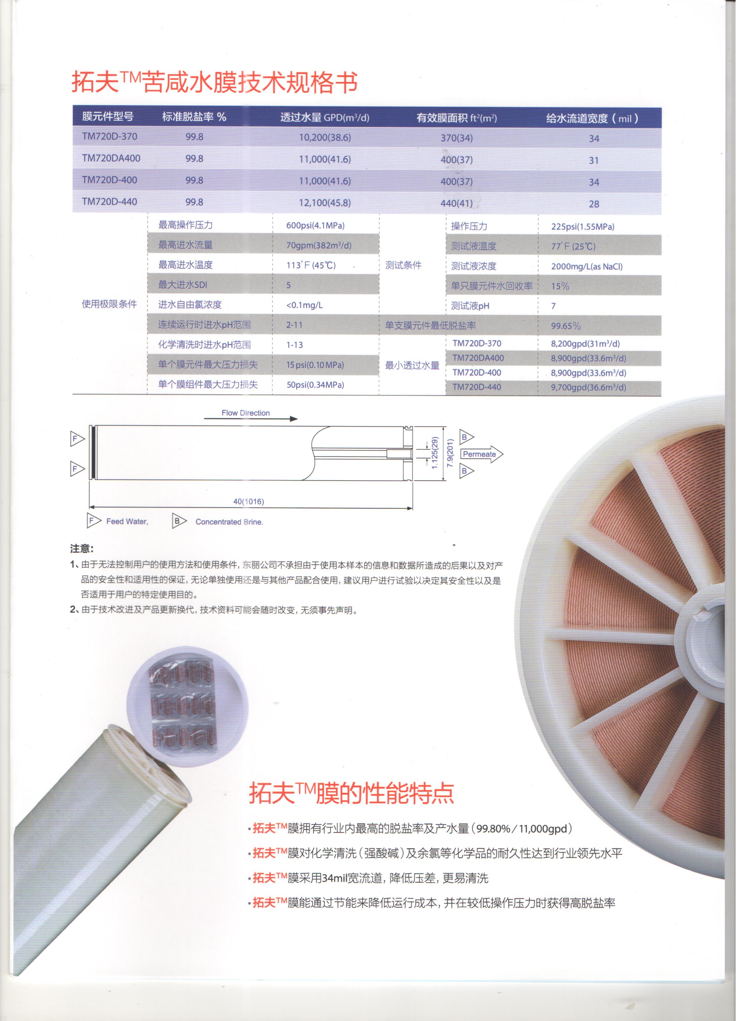 东丽反渗透膜采用34mil宽流道,降低压差,更易清洗